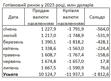 Всего с начала 2023 года украинцы продали 10,125 млрд. долларов и купили на 11,937 млрд. долларов. Чистая покупка валюты составила 1,813 млрд. долларов.