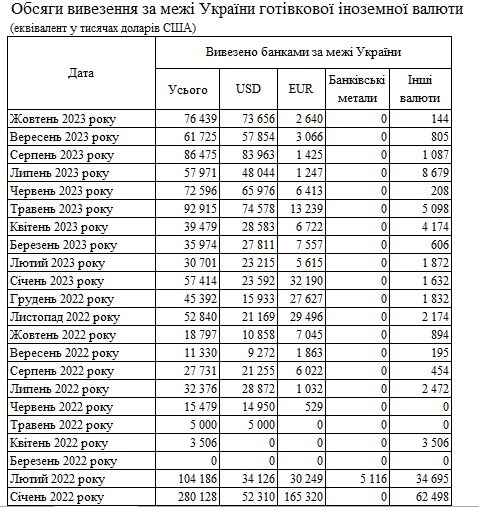 По данным НБУ, в октябре из Украины вывезли валюты на 76 млн долл., этот показатель остается на уровне предыдущих месяцев.
