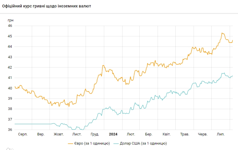 Официальный курс на 5 августа 2024 года установлен на таком уровне: 41,225 гривен за 1 доллар (+0,0860 грн).