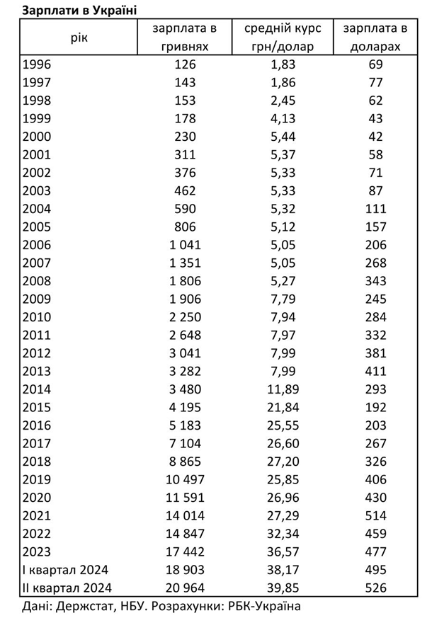Средняя зарплата штатных работников в Украине выросла во втором квартале 2024 года на 22,1% до 20 964 гривен.