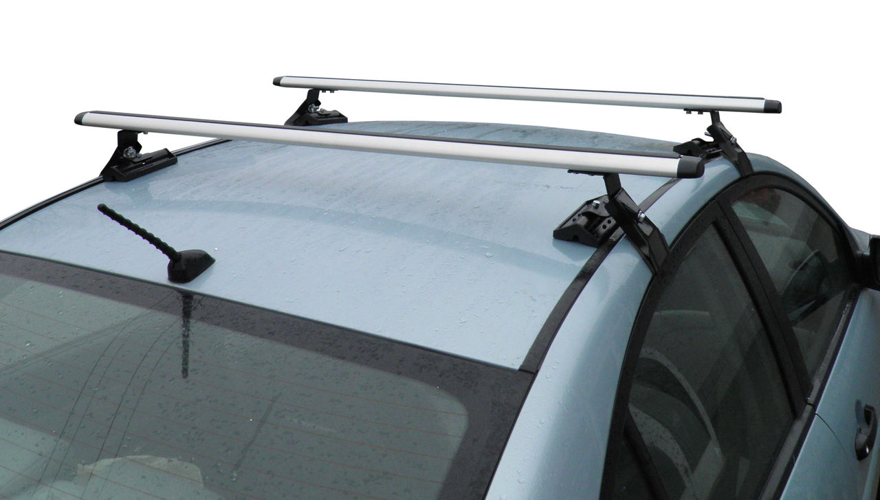 Прямоугольные алюминиевые поперечины более функциональны, подходят для перевозки больших по объему грузов. Раздвижной механизм позволяет увеличить длину каждой дуги до 60 см по обеим сторонам. Грузоподъемность данной модели – 100 кг.