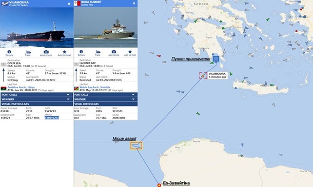 «По состоянию на 1 июля пожарный буксир под флагом Мальты Boka Summit тянет поврежденный взрывом танкер теневого флота РФ в Лаконскую бухту в Греции, чтобы оценить состояние судна», — отметили в сообщении.